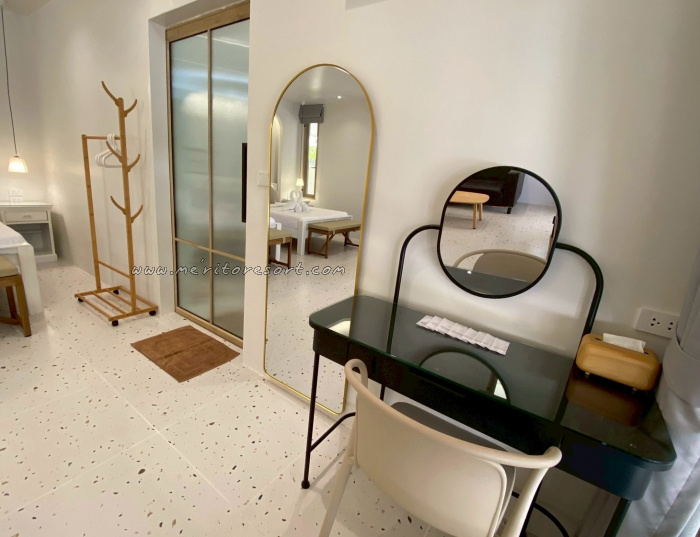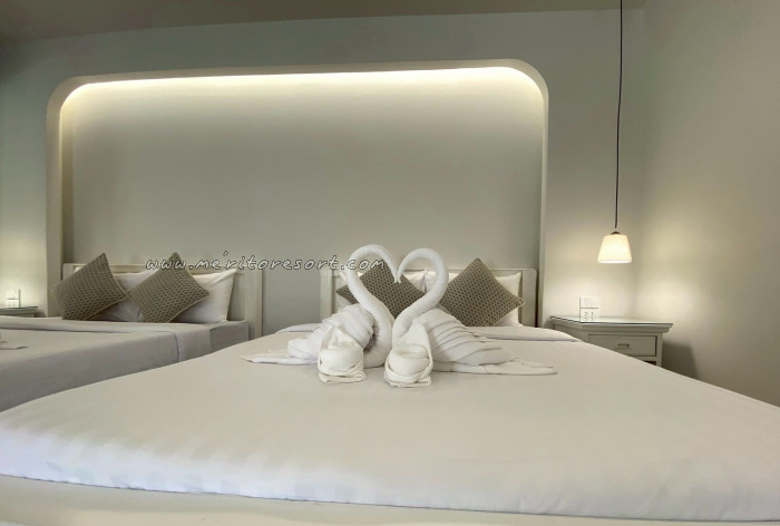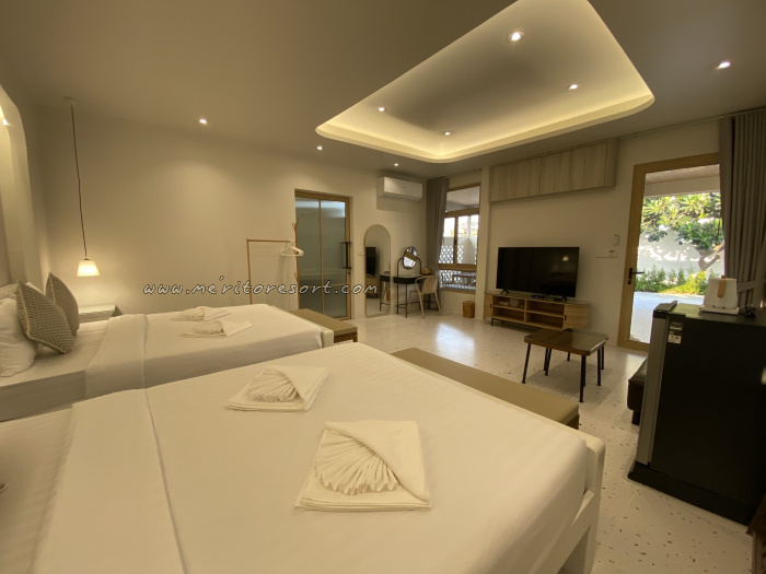 ห้องมีพื้นที่กว้างขวางและมีเครื่องอำนวยความสะดวกอย่างครบครัน สามารถนั่งชมวิวทะเลได้อย่างชัดเจนจากบนที่นอน พร้อมด้วยอ่างน้ำร้อนขนาดใหญ่ให้ท่านได้ผ่อนคลายด้วยการแช่น้ำร้อนพร้อมชมวิวทะเล สามารถเปิดบานหน้าต่างเพื่อรับกลิ่นไอทะเลที่แสนสดชื่น บริเวณหน้าห้องยังมีลานขนาดกว้างขวางให้ท่านได้นั่งเล่นสัมผัสกับบรรยากาศริมทะเลได้อย่างเต็มที่ เหมาะสำหรับพาครอบครัวที่ท่านรักมาพักผ่อนด้วยกันแบบสบายๆติดชายทะเล