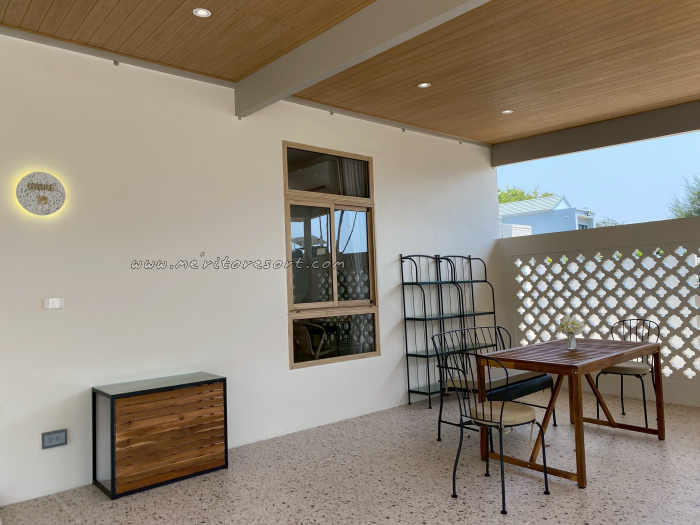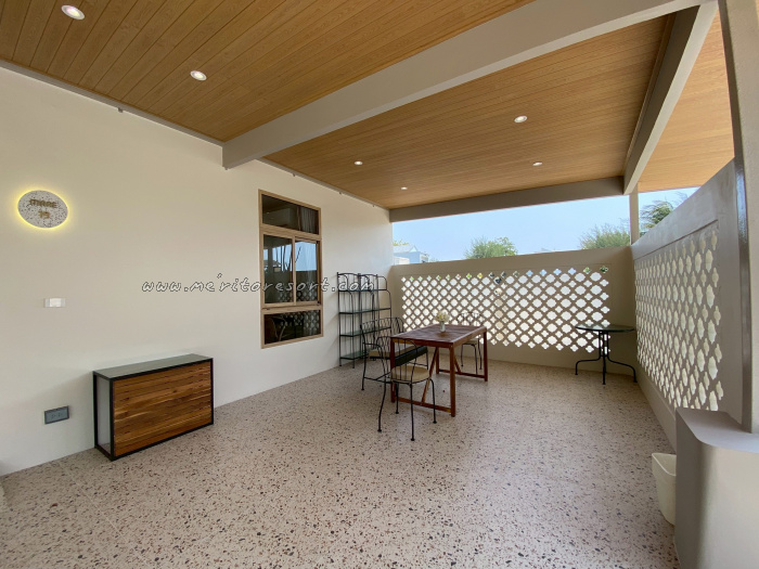 Softly opening the windows invites the refreshing sea breeze to flow through, bringing with it the quiet rhythm of the shore. Just outside, a spacious terrace awaits—an inviting place to sit, unwind, and fully embrace the tranquil seaside atmosphere.