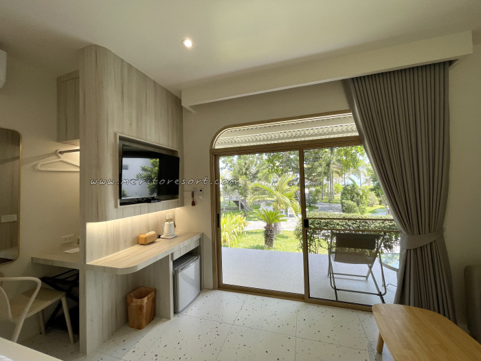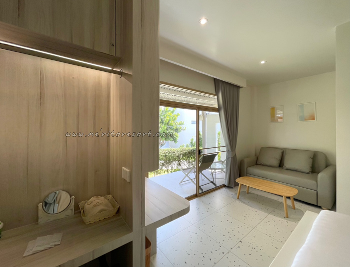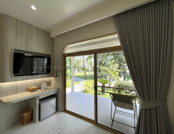 The newly renovated private standalone house, elevated from the ground, offers a front balcony for lounging and enjoying the tranquil sea breeze while admiring the sea view.