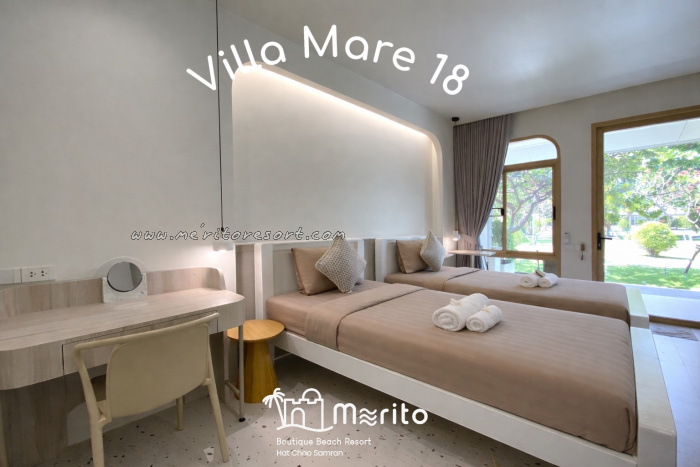 ห้องพักพร้อมเตียงนอนขนาด 3.5 ฟุต จำนวน 2 เตียง ให้ความสะดวกนอนสบายหลับสนิทตลอดคืน ภายในห้องมีพื้นที่กว้างขวาง ห้องใกล้ทะเล สามารถมองเห็นทะเลได้ทั้งจากภายในห้องด้วยกระจกบานใหญ่ด้านหน้าและจากลานนั่งเล่นหน้าห้อง และมีเครื่องอำนวยความสะดวกอย่างครบครัน