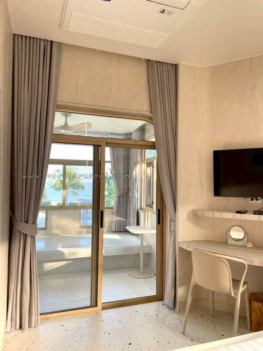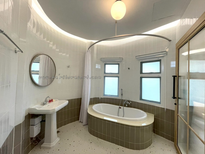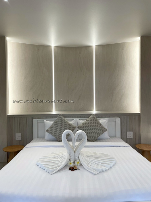 The newly renovated room specially designed for couples, featuring a charming and romantic atmosphere. It offers a balcony where you can relax and enjoy the scent of the sea, along with stunning ocean views from the 2nd floor of the Pui Mek building, conveniently located near the swimming pool.